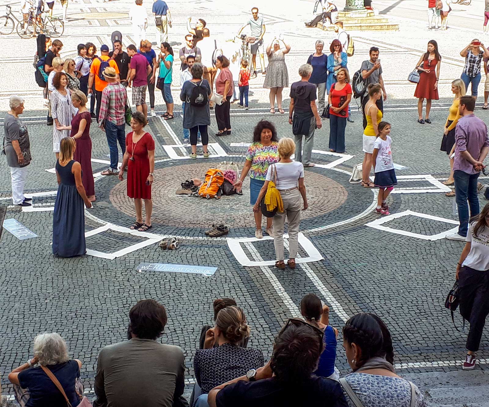 Samstag, 24. August 2019: »wERDschätzender Flashmob mit Eye-Contact« bewegt über 100 Menschen auf dem Münchner Odeonsplatz