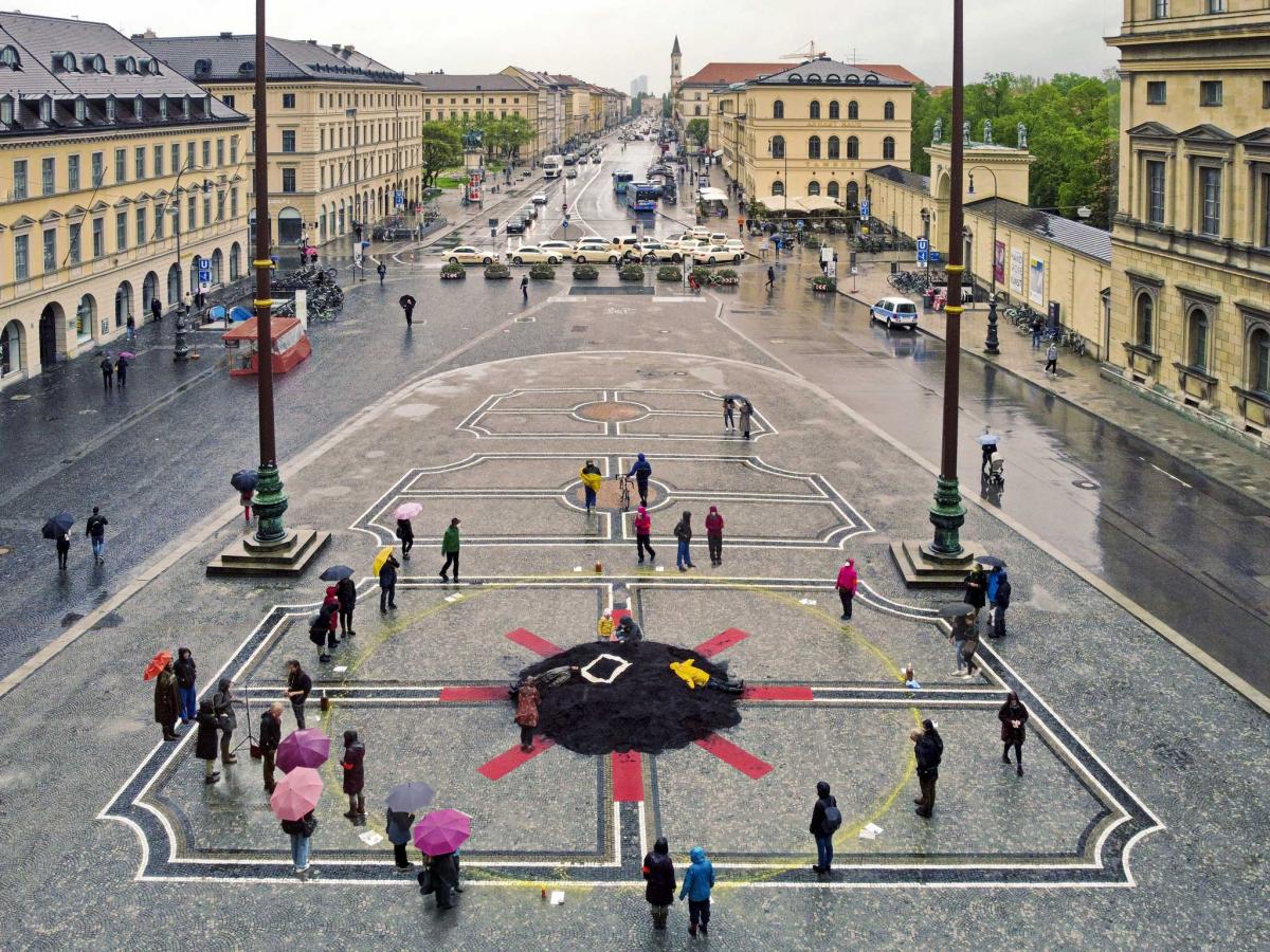 12. Mai 2021 – Installation mit 4 Tonnen Humus unter freiem Himmel auf dem Münchenr Odeonsplatz anlässlich des 100. Geburtstafes von Joseph Beuys