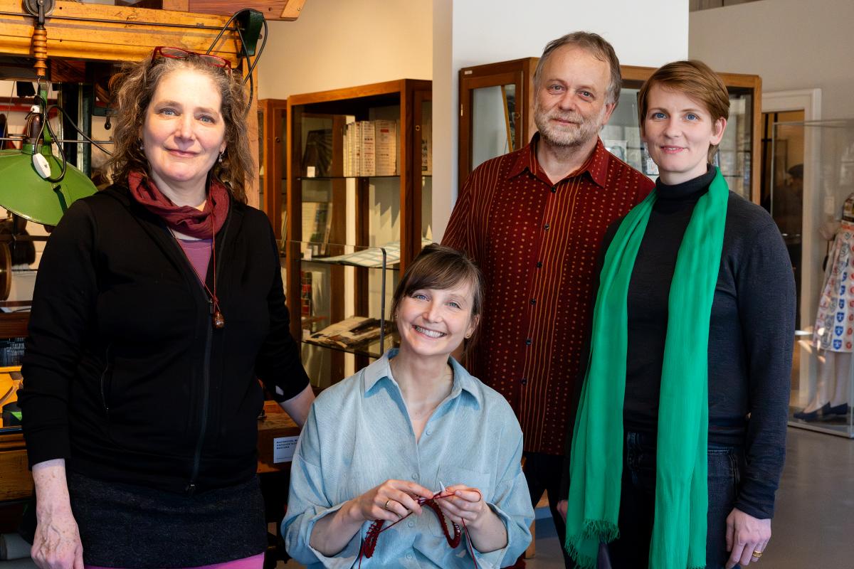 Team #Weben für Morgen: Uta Atzpodien, Annika KompArt, Michael Felstau und Franziska Hartmann im Bandwebermuseum. Foto: Ralf Silberkuhl.