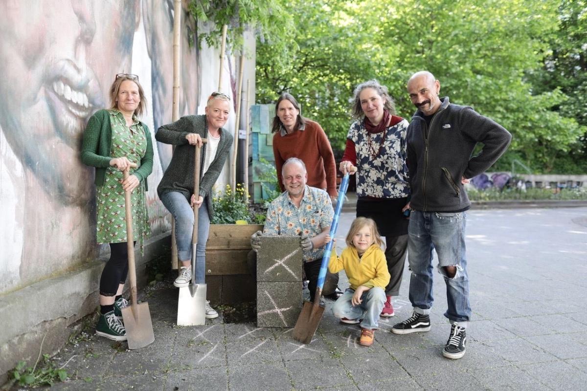 Mit dem Künsterduo Entretemps, das waren Béla Bluche am Kontrabass und Jakob Jentgens am Saxophone, wurde die INSEL Kulturgarten-Zeit am 16.5. zu einem wundervoll nachklingenden Zusammenkommen. Ins Hochbeet wurden Kartoffeln gesetzt, die Blumenwiese um den Container ausgesät. Dachsubstrate sind mit viel Kraft samt Totholz auf der zu begrünenden Container-Dachstruktur gelandet. Zudem wurde mit einer blauen Schaufel weiterer Boden entsiegelt, als Teil vom bundesweiten Abpflastern, mit dem wir die Böden befreien und den Weg hin zur Schwammstadt ebnen.